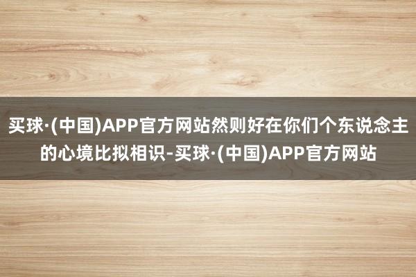 买球·(中国)APP官方网站然则好在你们个东说念主的心境比拟相识-买球·(中国)APP官方网站