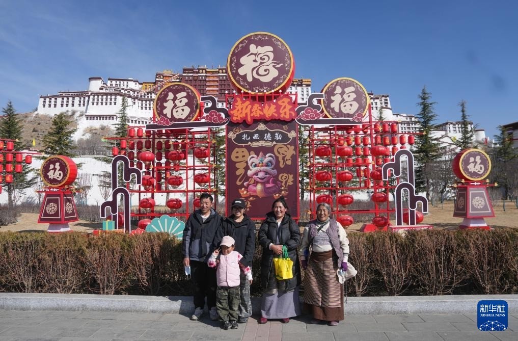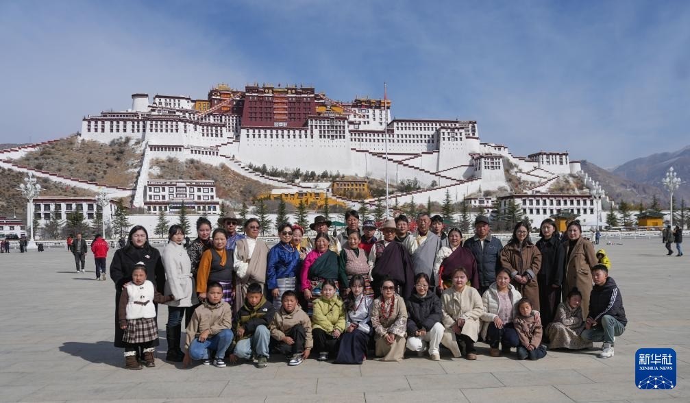 2月28日,来自西藏那曲市比如县的一家东说念主在拉萨布达拉宫前合影眷恋。