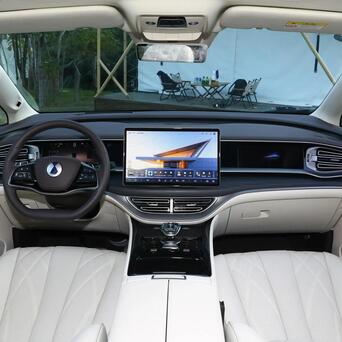 搭载 DiLink 超智能交互系统,配备专属定制车机芯片,车内屏幕多达 10 个,三排座椅皆相沿透风、加热功能,第二排配备两个小桌板,前排座椅相沿十点式推拿和主驾驶头枕音响等功能。