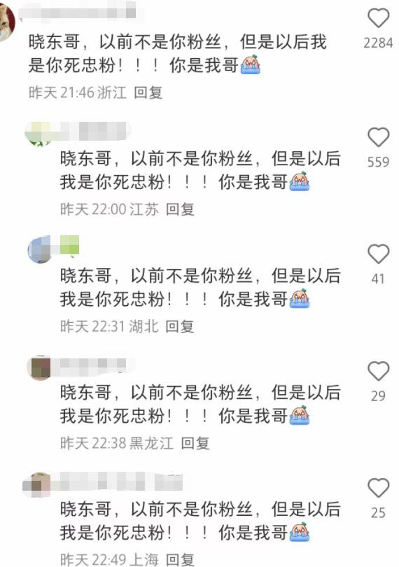 有网友径直说:“晓东哥,以前不是你粉丝,但所以后我是你死忠粉!”