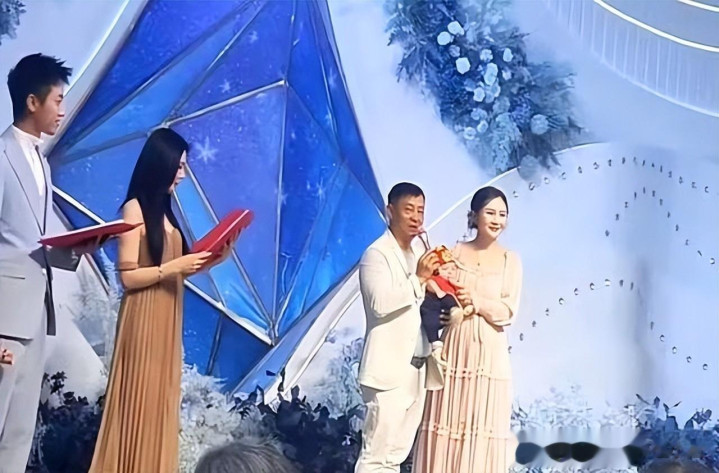51岁的他抱着刚朔月的犬子,笑得合不拢嘴,身边站着一位年青的番邦好意思女,全程亲密相伴。