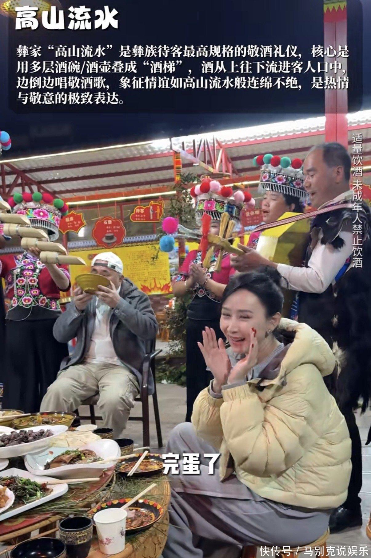 朱兆祥身为楚雄的半子,也享受到了当地最恢弘的敬酒方式。这种敬酒方式名为“峻岭活水”,即是把好几个酒壶叠起来搭成酒梯,酒顺着酒梯从上往卑劣到来宾嘴里,倒酒的时刻还得唱着敬酒歌。