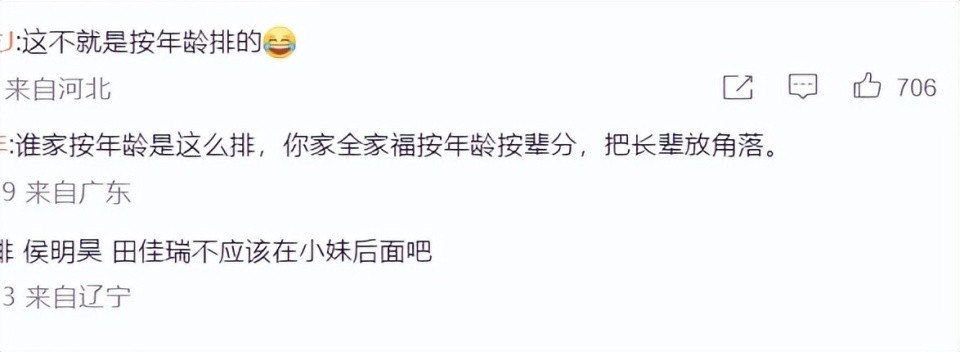节目刚播出的时辰,节目组给出的海报是周雨彤和金晨是C位,而陈好、宋茜等东谈主齐在边上,有网友暗意:是不是按照年岁排序的,这个不雅点一出,立即被反驳,你见过用年岁排序,却将年岁最大的放在边缘里吗?