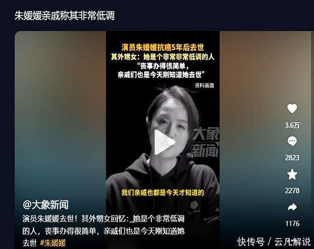 有音信说是朱媛媛的外甥女透露的,说朱媛媛生前就但愿一切检朴,是以好多亲戚王人是在葬礼本日才知谈她示寂的音信。