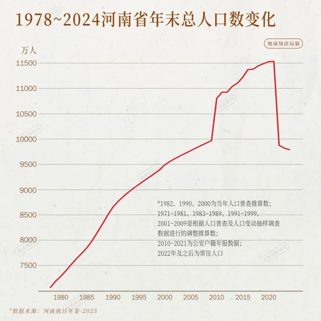 把柄河南省统计局数据,2024年末全省常住东谈主口为9785万东谈主,这一数字比2023年末减少了30万东谈主,四年减少了156万东谈主。