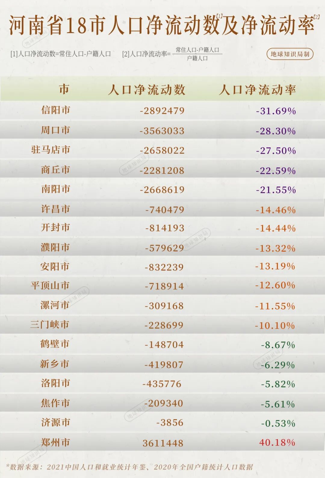 数据标明,2020年仅省会郑州市为东谈主口净流入,其余步市均为净流出。其中,信阳、周口、驻马店、商丘、南阳这五个豫南、豫东地市,是河南东谈主口净流出最多的地市。