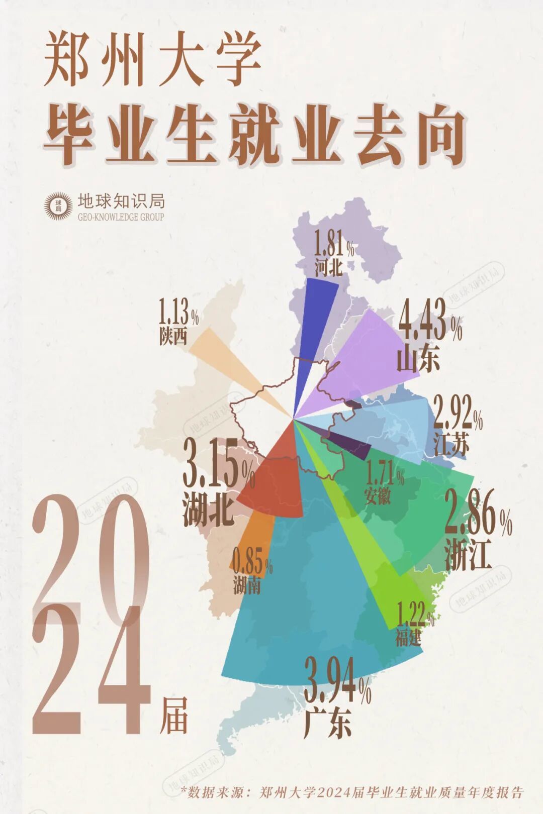 动作土产货最高学府的郑州大学,其2024届毕业生中有35.76%接受了省外服务,主要去往东部发扬省市。